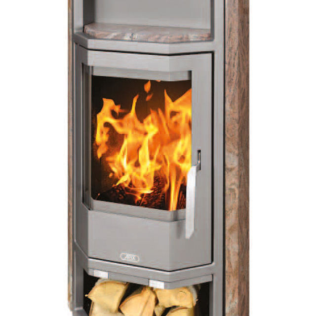 Mit dem Kaminofen ABX Kiruna 6 setzen Sie Feuer modern in Szene. Er besitzt ein platzsparendes, trapezförmiges Design. Dieses Ofenmodell hat eine Höhe von ca. 1,12 m. Der Korpus ist in Stahl Gussgrau mit Granit Paradies ausgeführt. Die Abdeckplatte, das Warmhaltefach und die Seitenverkleidung wurden in der jeweilen Ausführung (Granit Paradies) gewählt. Der integrierte Griff passt sich der flächenbündigen Front formschön an. Praktisch werden Sie sein Holzlegefach für stets griffbereites Brennmaterial finden. Eine Aschelade ermöglicht eine einfache Handhabung. Der Anschluß an einen Schornstein kann an der Rückseite oder oben durch die Öffnung in der Stahlplatte erfolgen.
